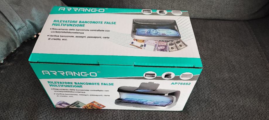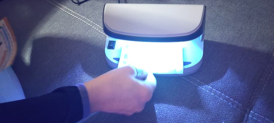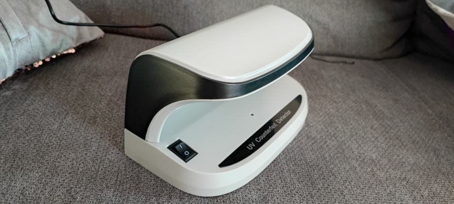 UV lampa za provjeru ispravnosti EURO novčanica. Ugrađen senzor pokreta,svjetlo se upali tek kad se postavi novčanica i ugasi nakon šta se ukloni.