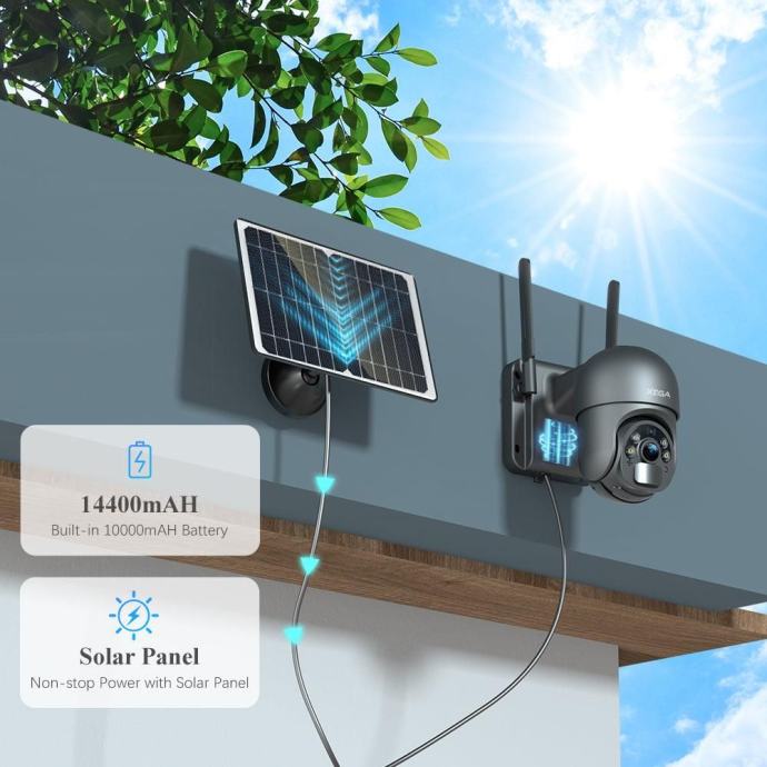 Solarna energija i ugrađene baterije: Uz baterije od 10000 mAh i solarni panel od 6 W, ova kamera je održiva i može raditi bez prekida. Spremanje podataka na SD memorijsku karticu do 128GB omogućuje vam pohranu važnih snimki.