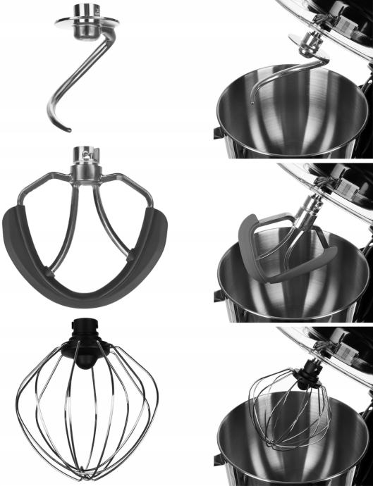 6 Razina napajanja- Uređaj je opremljen sa 6 razina rada, a svaki je prilagođen potrebama recepta koji se izvodi u određenom trenutku, uklj. Bičevanje, miješanje, razbijanje, miješanje tijesta, miješanje i još mnogo toga. Pored toga, ima pulsne funkcije.