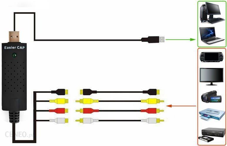 Pretvarač koji omogućuje prijenos analognog video signala s analogne kamere ili VHS video snimača u digitalni oblik na tvrdi disk vašeg računala putem USB priključka. Idealno rješenje za kopiranje VHS kaseta i analognih fotoaparata i snimanja televizora i satelitskih emisija na računalni disk. Omogućuje vam povezivanje svih vrsta analognih igrača za snimanje videozapisa.
