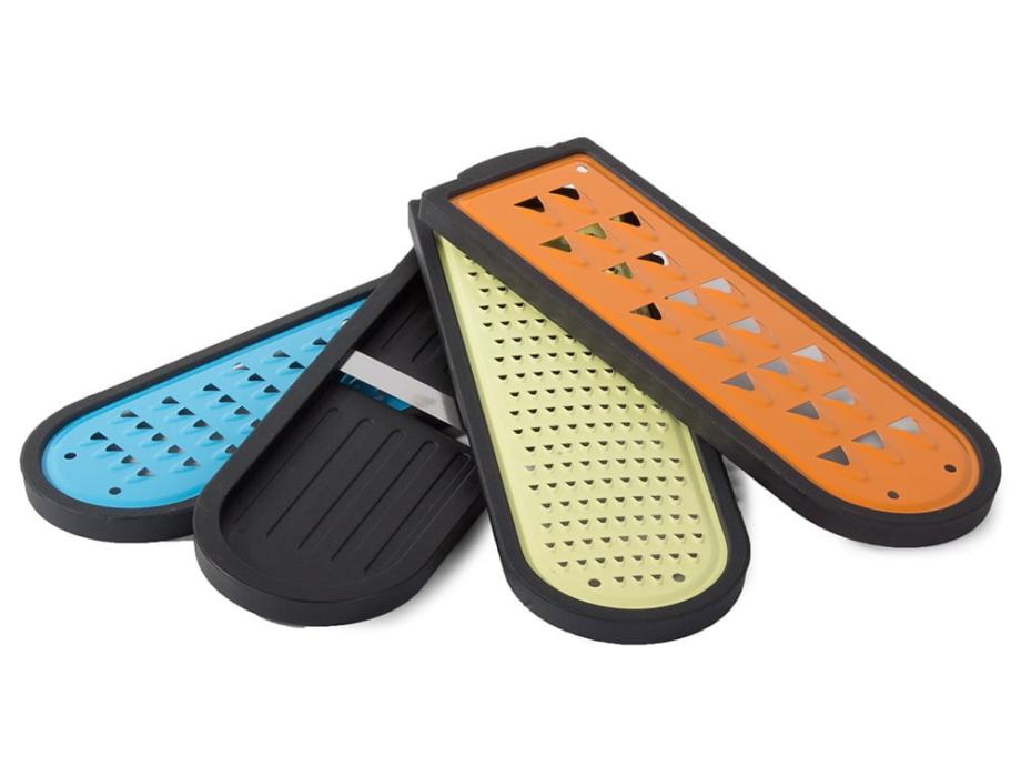Savršeno se reže, mljeve se povrće i voće za ukusnu salatu ili druga popularna jela. Plastična posuda od 600 ml pričvršćena na komplet olakšat će skladištenje naribanog povrća i voća.