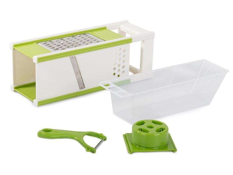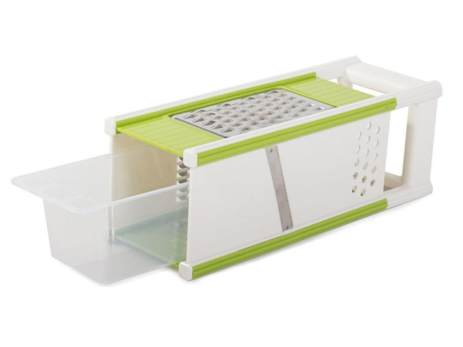 Multifunkcionalni strugač s oguljivanjem i ručkom za držanje proizvoda, što pruža samo prednosti koje olakšavaju rad u kuhinji. Savršeno se reže, mljeve se povrće i voće za ukusnu salatu ili druga popularna jela.