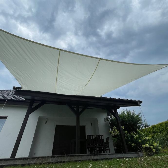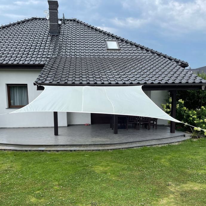 Sjenoviti jedro izvrsno je za zasjenjenje sobe za opuštanje u vrtu, balkonu, terasi ili kampu. Ima izuzetno široke mogućnosti ovjesa. Sve zahvaljujući praktičnom kompletu za montažu koji dolazi s jedrom. Jedra je izrađena od najkvalitetnijih materijala, tako da će trajati nekoliko sezona. Ima poseban premaz koji je vodootporan. Roba se brzo osuši, a ne plijesan.