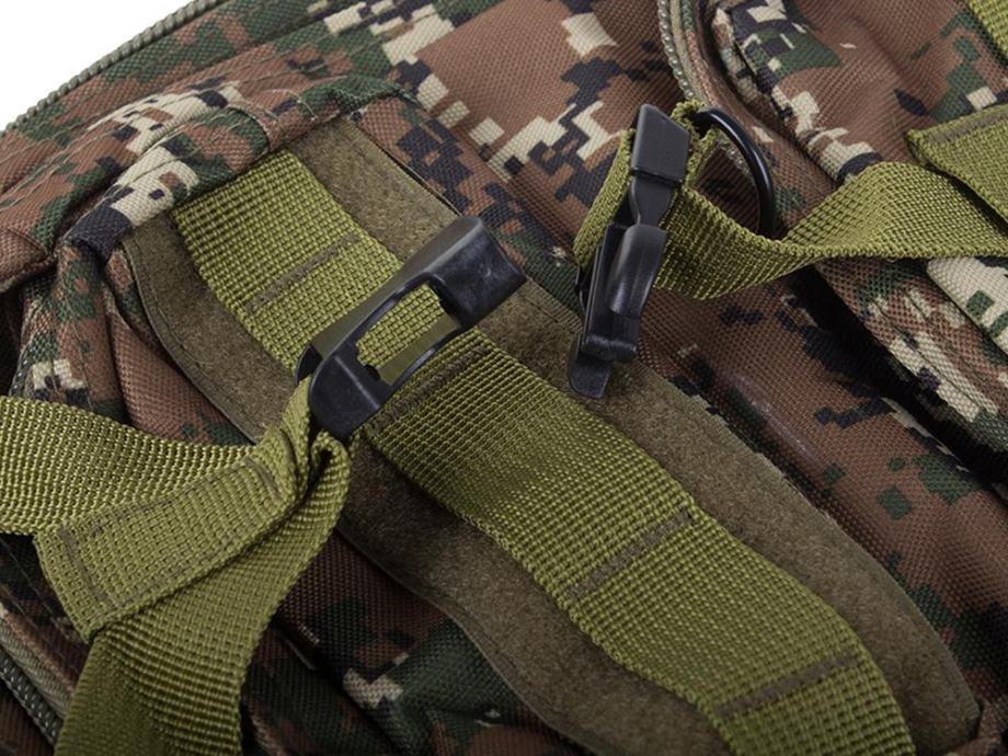 Ruksak ima podesivo pričvršćivanje u sustavu Molle, što vam omogućuje dodavanje dodatnih džepova i modula u torbicu. Dodatno opremljen strukom za grudi i kukove- omogućuje vam da ublažite kralježnicu i ramena tijekom dugih putovanja. Posebne kaiševe posebno su korisne u nošenju stvari kao što su jakne, šatore, obloge za spavanje. Pojas kuka ima čvrstu kopču i podešavanje duljine. Nakon pričvršćivanja pojasom, ruksak je vrlo stabilan, ne naginje se u stranu tijekom nošenja.