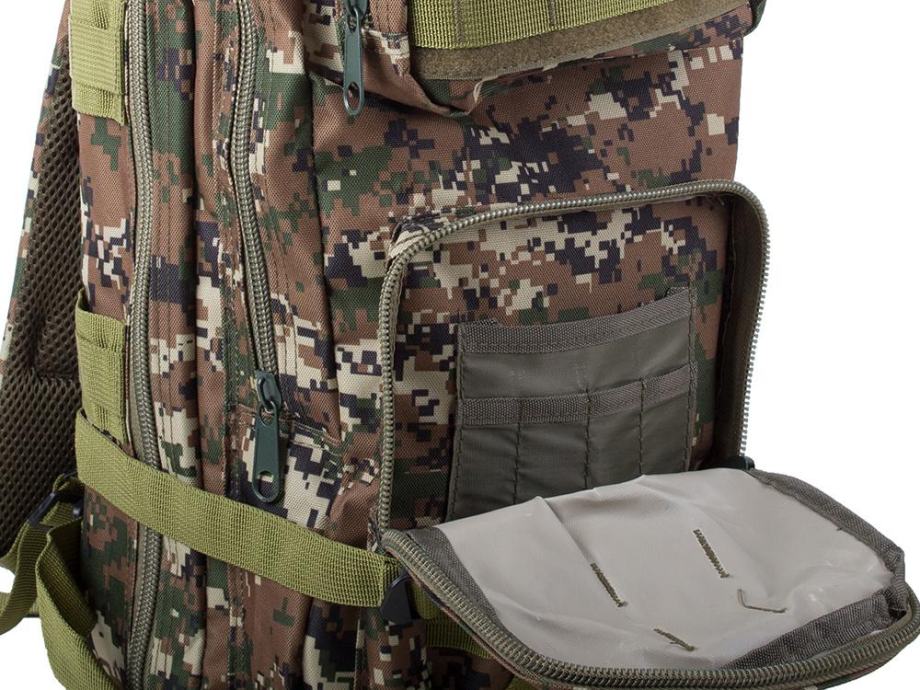 Zahvaljujući razmaku od 30 litara, ruksak nudi puno prostora za pohranu vaše opreme i pribora. Ima nekoliko odjeljaka i džepova namijenjenih organiziranju vaših stvari, poput odjeće, hrane, vode, komunikacijske opreme, prve pomoći i još mnogo toga. Međutim, sustav Molle s vanjske strane ruksaka omogućuje vam pričvršćivanje pribora i dodataka poput noževa, svjetiljki, boca i drugih zaliha.