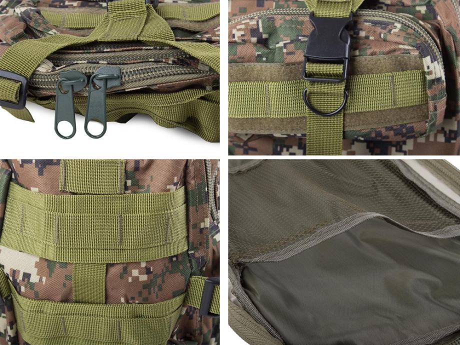 Vojni taktički ruksak od 30L zelenila više je od ruksaka - to je vaš vjerni pratitelj i pouzdan partner u svim vašim avanturama. Bilo da idete na pješačenje, kampiranje ili preživljavanje u divljini, ovaj će vam ruksak pružiti sve što vam je potrebno za uspješno i ugodno iskustvo. Ne riskirajte svoju sigurnost i utjehu, već da biste danas dobili vojni taktički ruksak za preživljavanje 30L zeleni!