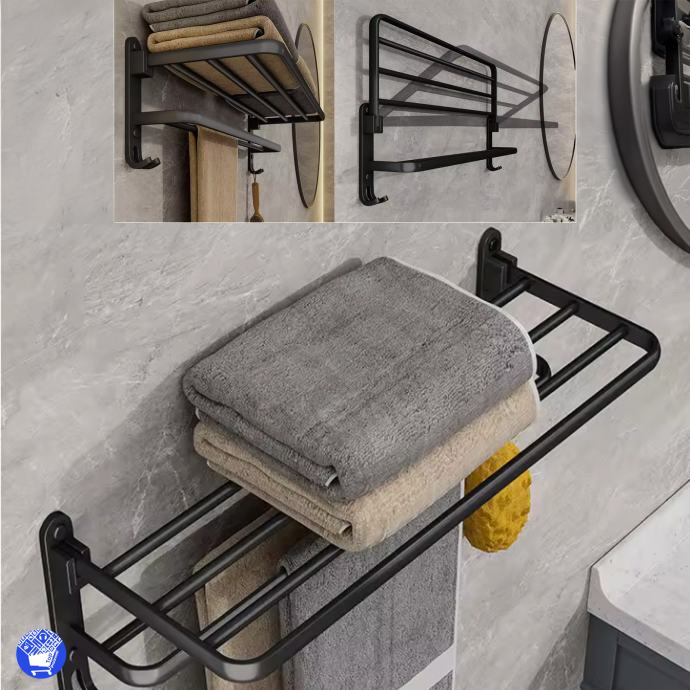 Gornja polica savršena je za slaganje ručnika i kupaonskih proizvoda, dok donji držač omogućuje odlaganje svakodnevnih ručnika na dohvat ruke. Konstrukcija je izrađena od visokokvalitetnog metala s mat crnim premazom koji je otporan na vlagu, koroziju i ogrebotine.