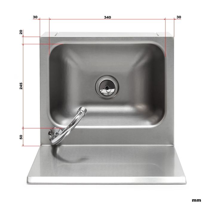 Ovaj Washbasin pruža optimalnu higijenu zahvaljujući korištenim materijalima i konstrukciji. Stoga je prikladan za upotrebu, na primjer, u gastronomiji. Budući da je izrađen od nehrđajućeg čelika, a karakterizira ga jednostavno i brzo čišćenje. Stoga se sudoper može koristiti i u kantini ili bolničkim sobama. To se dodaje praktičnoj zaštiti od spreja, što sprečava da voda teče iza sudopera.