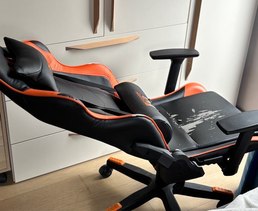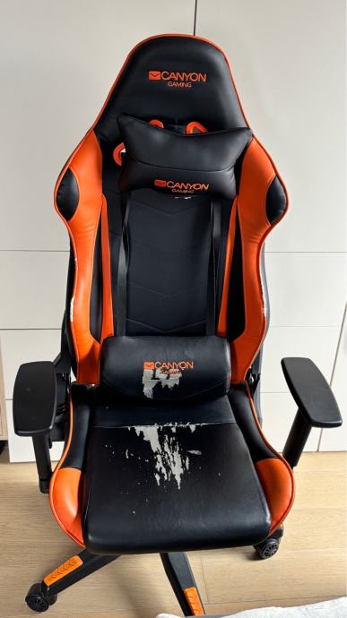 Dosta koristena gaming stolica. Na slikama se vide ostecenja, ali onome kome estetika nije bitna vec udobnost, nece smetati. Cijena je fiksna