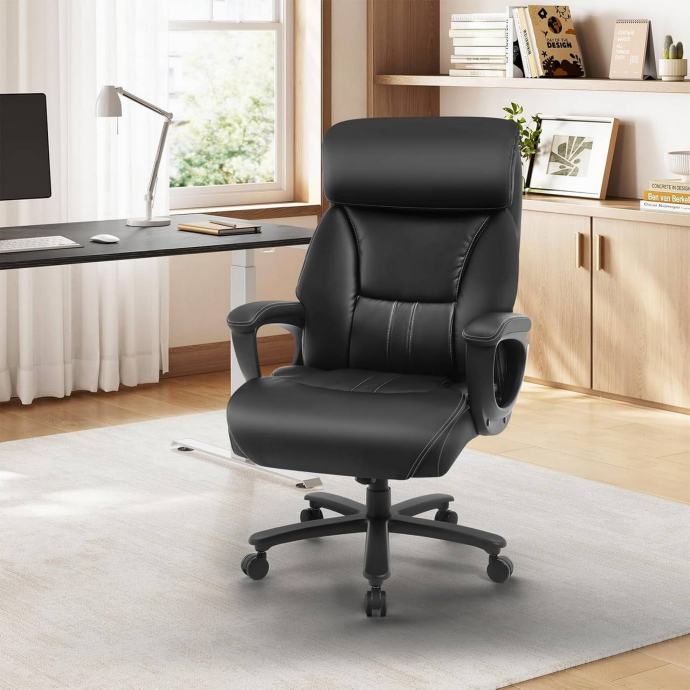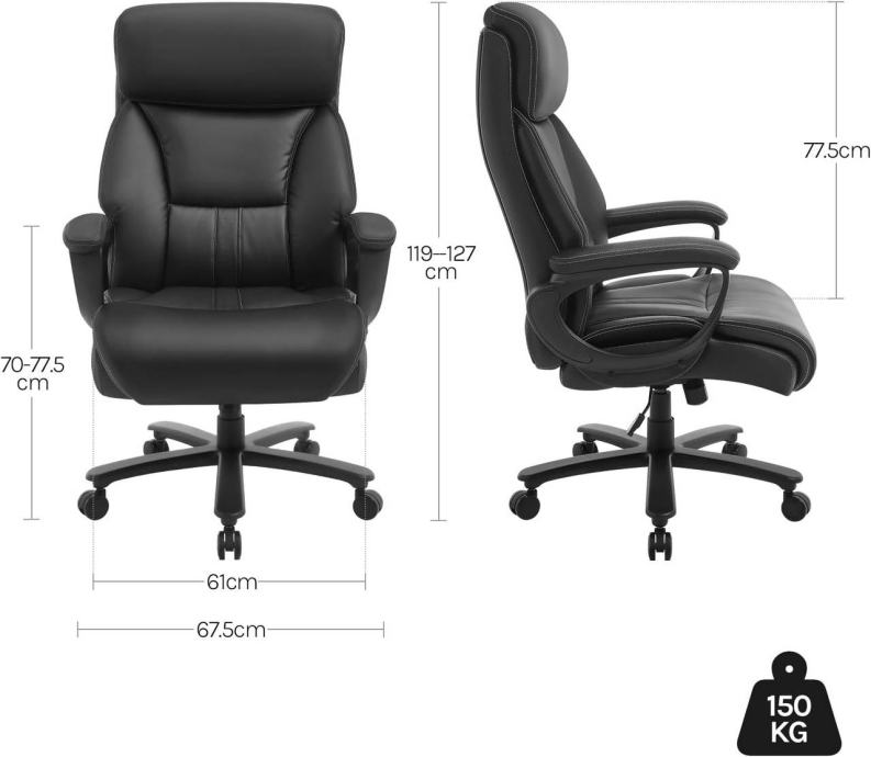 Ova uredska stolica dizajnirana je za visoke i teže korisnike, pružajući izvanrednu udobnost zahvaljujući ergonomskom dizajnu koji prati konture tijela. Stolica ima široki naslon za glavu koji podupire vrat, proširene i tapecirane naslone za ruke, te lumbalnu potporu za pravilno držanje i visok naslon za optimalnu potporu leđa.