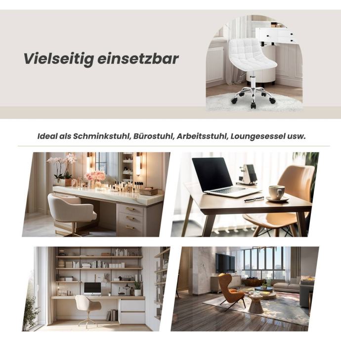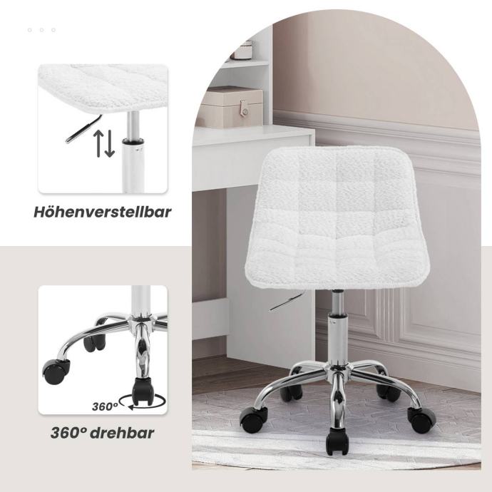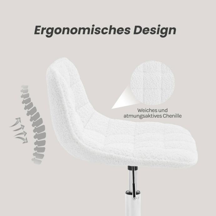 Ergonomska uredska stolica s niskim naslonom i rotirajućim sjedalom pruža udobno sjedenje zahvaljujući mekanoj, ugodnoj chenille presvlaci i visokokvalitetnoj elastičnoj pjeni koja ravnomjerno raspoređuje pritisak tijela. Zakrivljeni naslon prilagođava se obliku tijela, a sjedalo se može rotirati 360° te podešavati po visini od 40 do 47,5 cm, što omogućuje prilagodbu različitim korisnicima i radnim površinama.