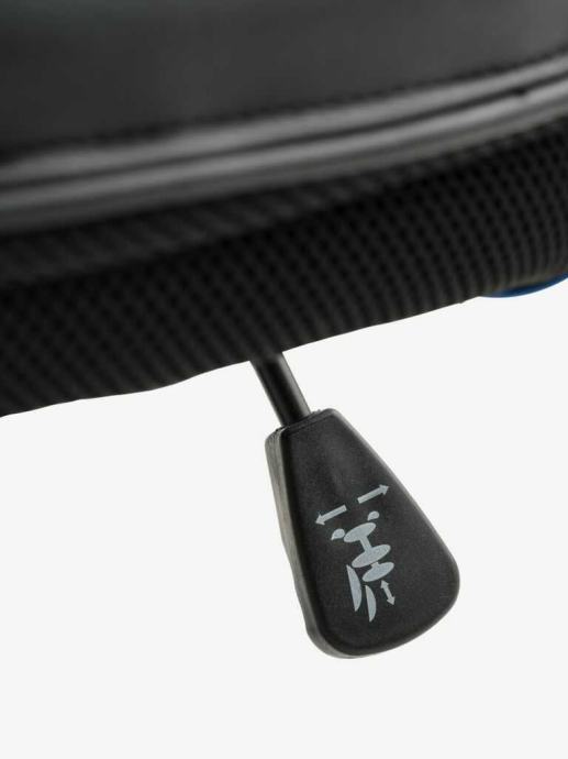 VOJENS nova zapakirana gaming stolica dizajnirana je da vam pruži potporu tijekom dugih sesija igranja igrica. Praktični nasloni za ruke koji se mogu podići omogućuju vam da birate između potpore ili više prostora za kretanje. Sjedalo je presvučeno crnom umjetnom kožom s plavim detaljima. Š72xV108-118xDub67 cm.