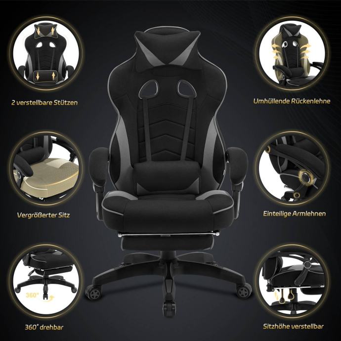 Gaming stolica od tkanine s jastukom za lumbalnu potporu BS83
