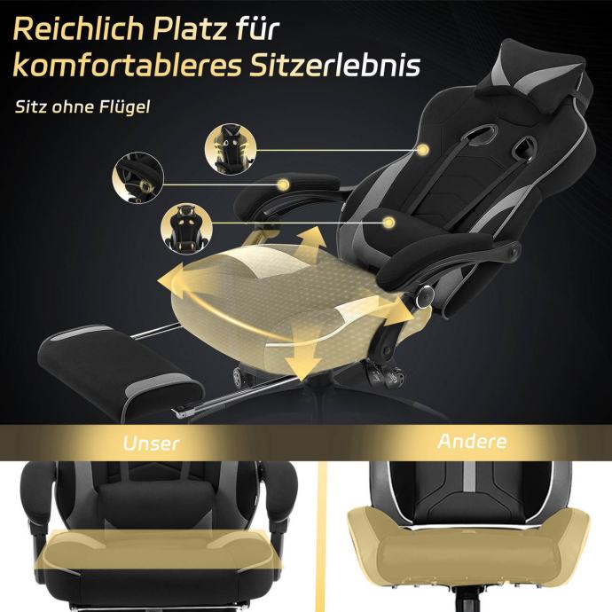 VISOKA UDOBNOST SJEDENJA: Stolica ima dobro tapecirani sjedalo od tkanine koje osigurava ugodno sjedenje i udobnost tijekom dugih sati igranja ili rada.