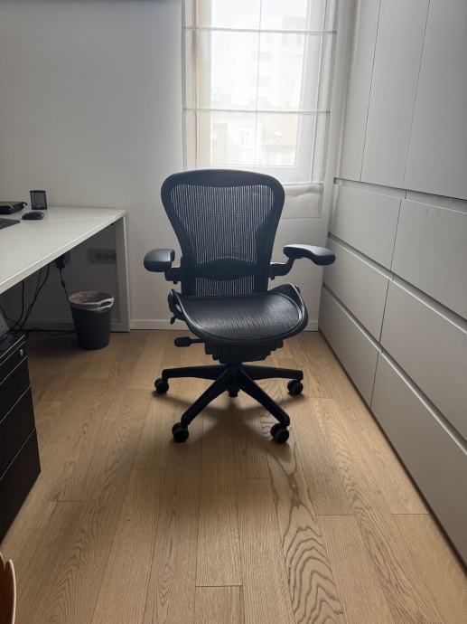 Prodajem Herman Miller Aeron ergonomski stolac, veličina B, kupljen u Zagrebu kod ovlaštenog zastupnika Laurus Net. Riječ je o legendarnom premium stolcu koji se smatra zlatnim standardom u ergonomiji i dugotrajnosti. Korišten povremeno kad sam u Zagrebu (ne živim u Hrvatskoj).