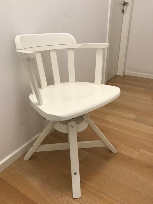 Prodajem IKEA FEODOR uredsku stolicu, puno drvo, okretna s naslonom za ruke i regulacijom visine u bijeloj boji. Stolica je izrađena od čvrstog drveta breze. Vrlo kratko korištena, u odličnom stanju i sa manjom ogrebotinom.
