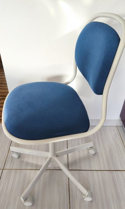 Prodajem Ikea Orfjäll uredsku, bijeli okvir i plavo tapeciranje sjedišta i naslona. Stolica je jednostavnog dizajna i praktična za svakodnevnu upotrebu. Kao nova, kratko korištena.