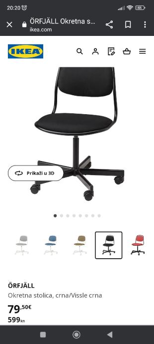 Radna stolica Ikea, vide se tragovi po njoj, potrebno oprati tkaninu. Osim tkanine stolica je u dobrom stanju
