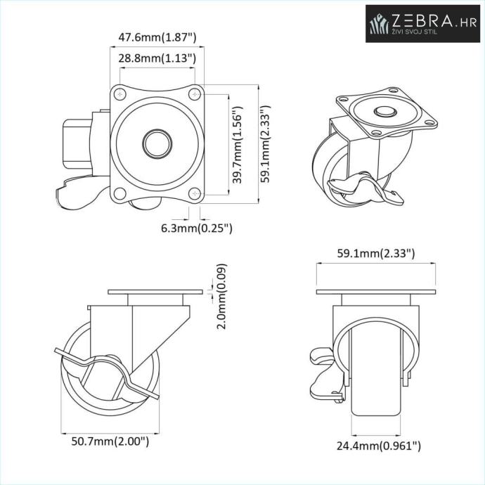 Ovi okretni kotačići s kočnicom su super svestrani i praktični za razna okruženja. Napravljeni su od čvrstog željeza i najlona, garantiraju pouzdanu uslugu za uredske stolice i laganu opremu.