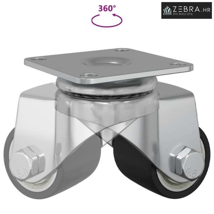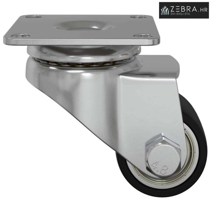 Ovaj najlon kotač je super za poboljšanje mobilnosti razne opreme, kao što su radni stolovi, stolići za kavu i kolica za kupovinu. Njegov srebrni dizajn spaja funkcionalnost s modernim izgledom, dajući učinkovit dodir svakom premještanju namještaja ili opreme.