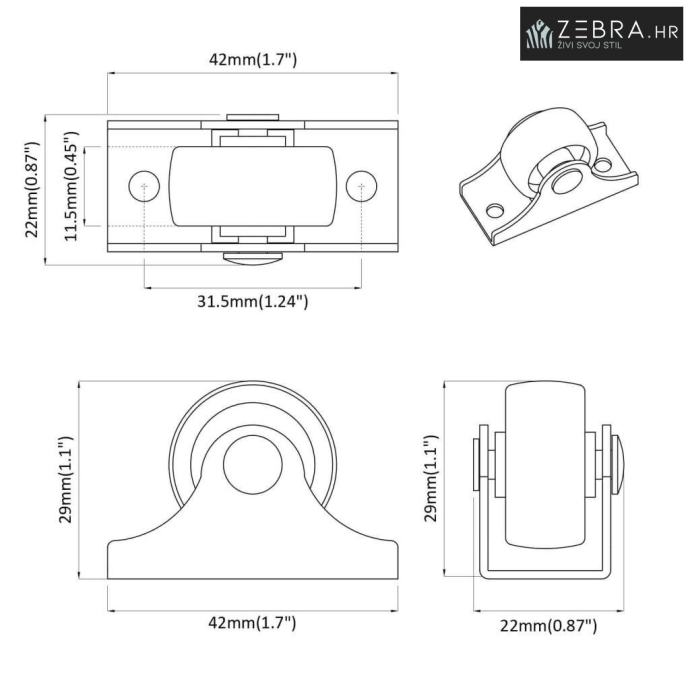 Otpornost na hrđu: Kotačić je zaštićen od hrđe i vlage, čime mu se produžava vijek trajanja i osigurava glatko funkcioniranje čak i u vlažnim okruženjima.