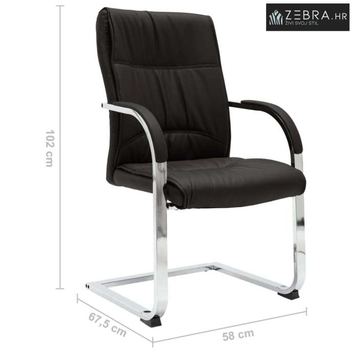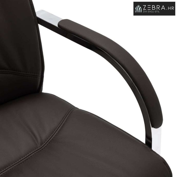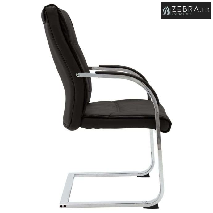 Ova uredska stolica s naslonima za ruke ima ergonomski dizajniran naslon, što vas oslobađa bolova u leđima tijekom užurbanog radnog vremena. Meko podstavljeno sjedalo pruža cjelodnevnu udobnost prilikom sjedenja. Sjedalo i naslon napravljeni su od kvalitetne umjetne kože za dugogodišnju upotrebu. Uz to, čvrste noge stolica od kromiranog željeza, suvremenog dizajna, pružaju veliku stabilnost.