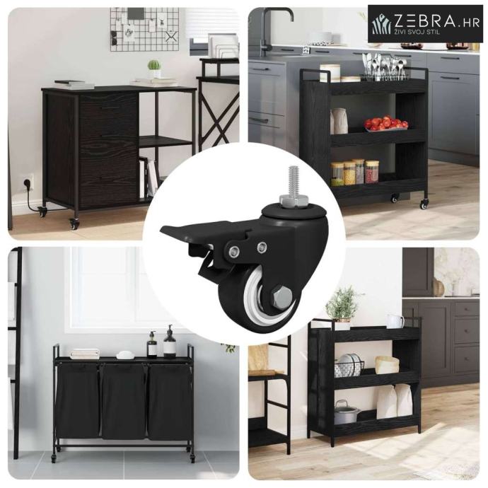 Ovi moderni kotačići spajaju stil i funkcionalnost, savršeni su za svakoga tko želi glatku mobilnost i razne primjene. Njihov elegantan dizajn od željeza i najlona izgleda moderno, a istovremeno su i izdržljivi. Crna završna obrada se uklapa u razne stilove, pa su odličan izbor za svaki prostor.