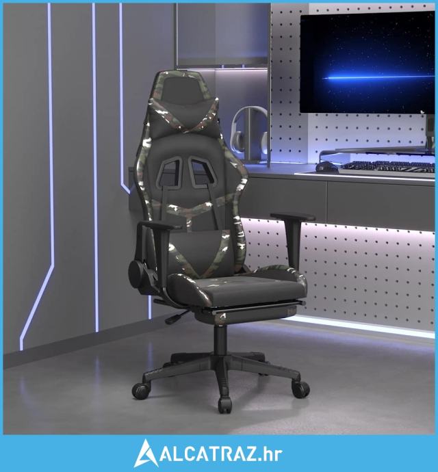 Masažna igraća stolica s osloncem crno-maskirna od umjetne kože - NOVO