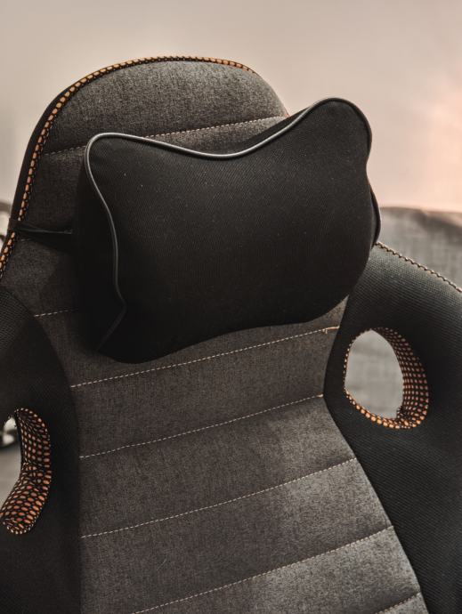 NOVEL gaming stolica, kupljena u Lesnini prije ~2 godine. Korištena u uredu. Uz stolac dolazi jastučić za glavu koji je kupljen posebno. Stolac je u dobrom stanju, tragovi korištenja se vide na tkanini sjedišta i na ručnim naslonima.