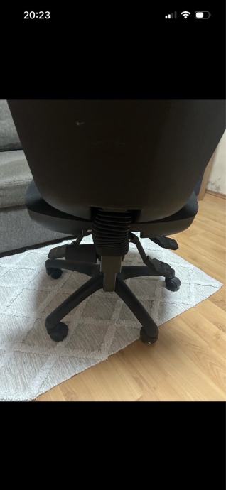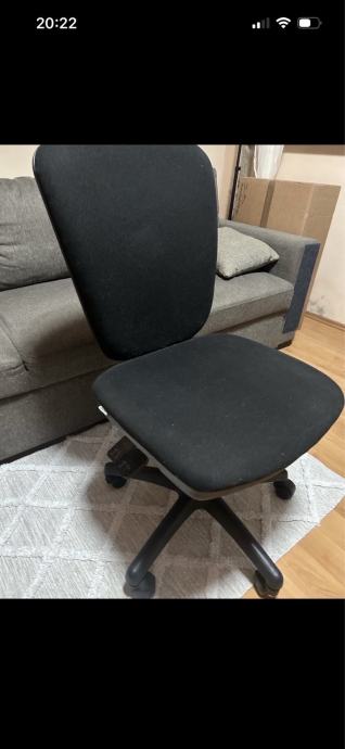 Prodajem uredsku okretnu stolicu u crnoj boji. Stolica ima klasičan dizajn s visokim naslonom i tapaciranim sjedalom, što pruža udobnost tijekom rada. Postavljena je na crnu plastičnu bazu s kotačićima koji omogućuju lagano kretanje. Visina se može podesiti prema potrebi, a stolica se slobodno okreće za bolju pokretljivost. Pogodna za kućni ured ili poslovni prostor.