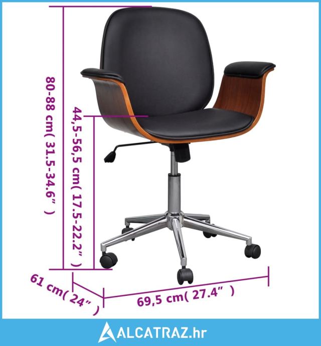 Stolica presvučena umjetnom kožom visoke kvalitete je podstavljena za optimalnu udobnost. Zaobljeno drvo pridodaje jedinstvenom šarmu i stilu stolice. Podesivi naslon vam pruža podršku i pomaže u umanjenju pristiska na vašoj kičmi. 5 kotača dizajnirani su za lako premještanje.