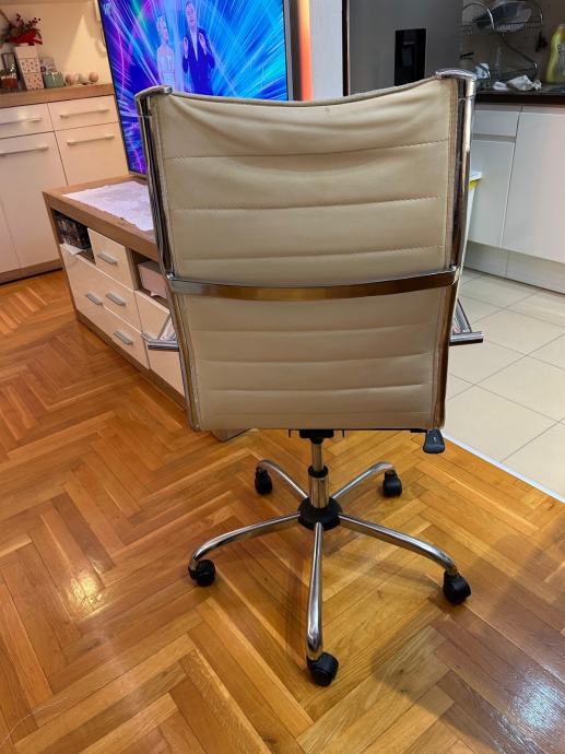 Uredska stolica, materijal imitacija kože ,krem boje sa podešavanjem visine,jednostavno za rukovanje preko poluge ,