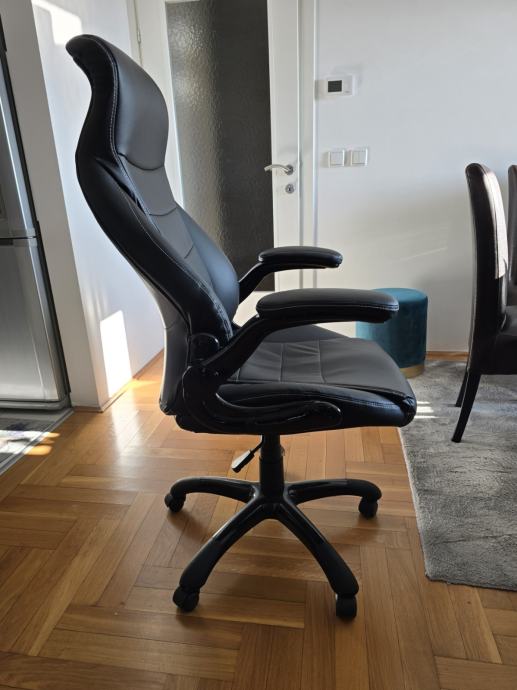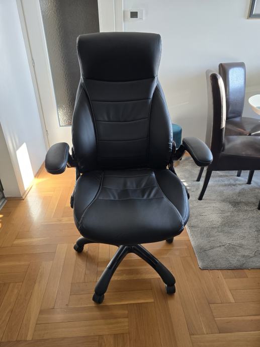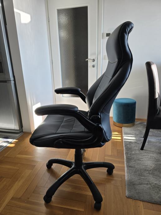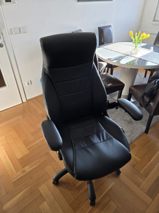 Radna ili gaming fotelja od eko kože, potpuno ispravna i funkcionalna, nema nikakvih oštećenja. Mogućnost podešavanja visine sjedala i nagiba naslona. Regulacija otpora naslona kod ljuljanja. Dostava i transport isključivo u organizaciji kupca.