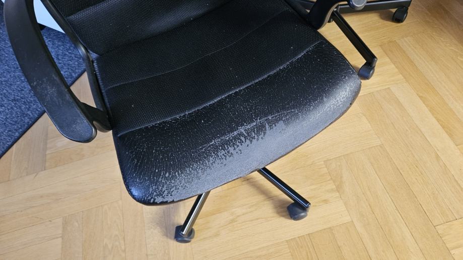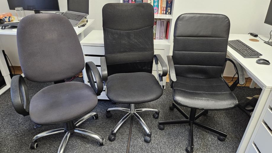 Poklanjaju se tri rabljene stolice, jedna s vidno lošijim stanjem tapecirunga (vidljivo na fotografiji).