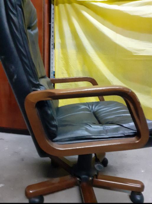 Prodaju se uredske fotelje od eko kože, 5 komada,u odličnom stanju.Imaju drveni naslon za ruku.Podesive su po visini i također se na njih može udobno nasloniti. Mogu se koristiti za bilo koji radni stol iako su idealne za prostoriju za sastanke.Nalaze se u Splitu na Zenti, u garaži,dostava je nemoguća radi veličine i težine samog komada.Kupac mora doći po artikal. Cijena 50€ po komadu.