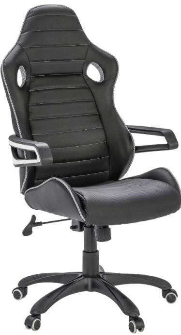 Crna kožna uredska stolica pogodna za duže sjedenja za računalom.