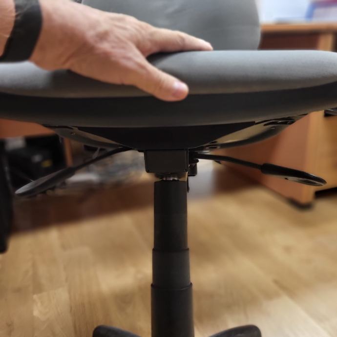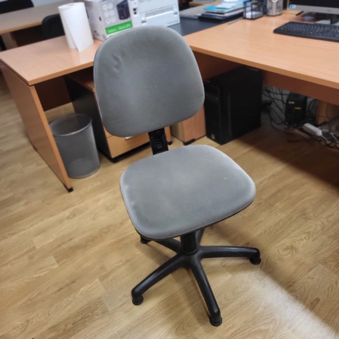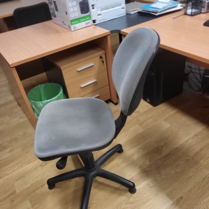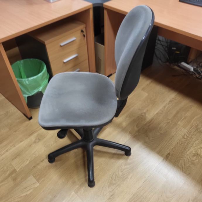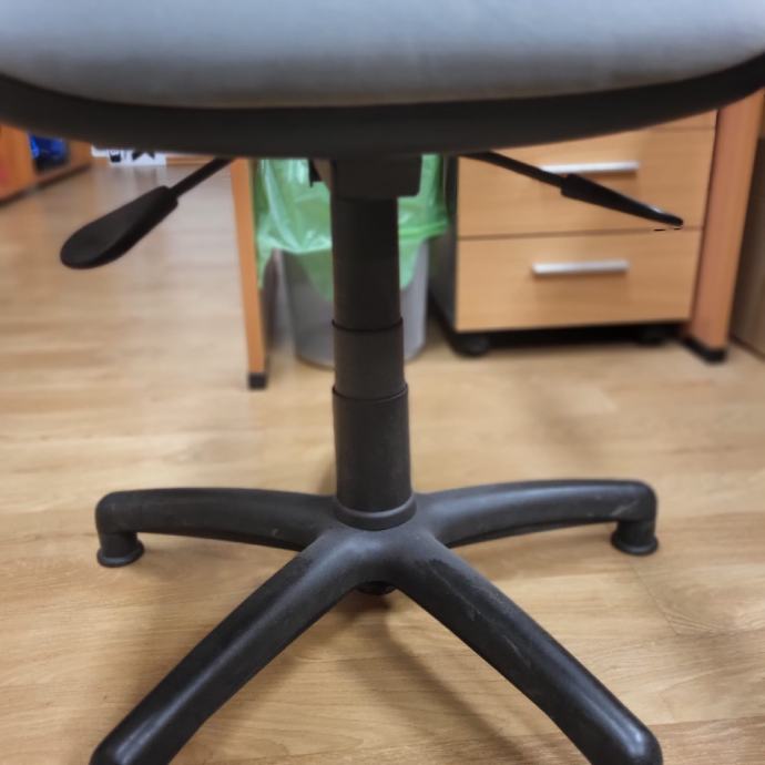 Prodajem uredske/radne stolice koje su bez kotača, mogu se okretati, imaju namještanje po visini pomoću desne ručice. Namještanje nagiba naslona i sjedala je pomoću lijeve ručice. Udobne su za sjedenje.