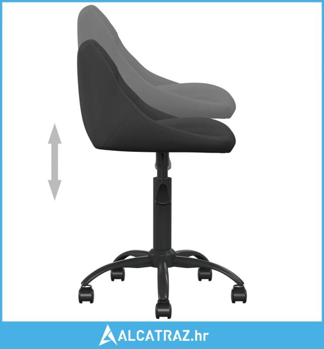 Sjedalo je presvučeno baršunom mekim na dodir i debelo podstavljeno, zbog čega je vrlo udobno i izdržljivo. Okvir od čelika obloženog crnim prahom pruža visoku čvrstoću i stabilnost. Zahvaljujući plinskom mehanizmu za podizanje, možete podesiti visinu sjedala kako vam odgovara. Uz to, kotačići se okreću za 360 stupnjeva, što vam omogućuje slobodno pomicanje u različitim smjerovima po potrebi.