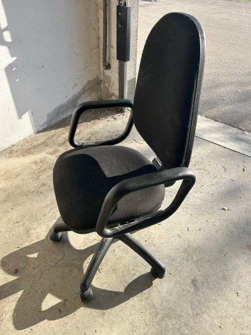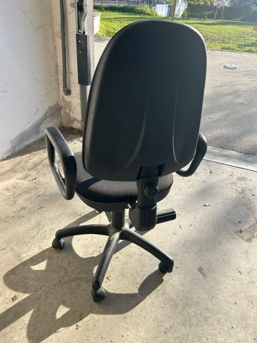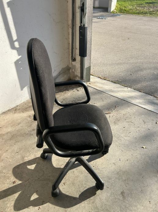 Prodajem crnu uredsku stolicu s naslonima za ruke i podesivom visinom sjedala.