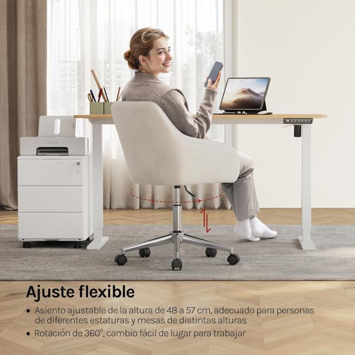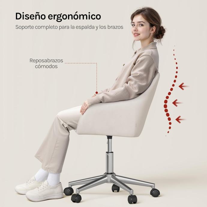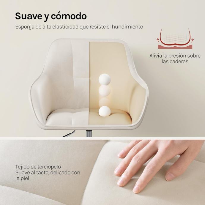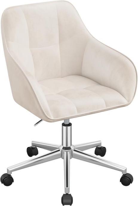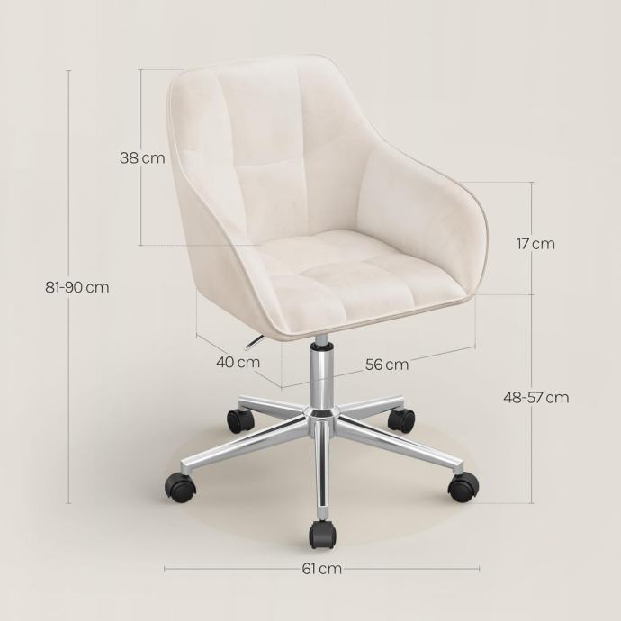 uredska stolica s kotačima, okretna uredska stolica, baršunasto sjedalo s naslonima za ruke, podesiva visina, fotelja za spavaću sobu i toaletni stolić, krem boja, BS145cm
