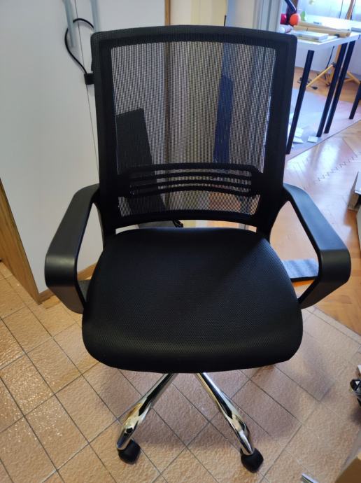 Uredska stolica podešava se po visini, okreće se, ima kotače.