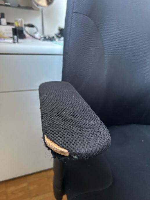 Navlaka na ručkama je potrošena kao sto se vidi i na slici, tragovi korištenja vidljivi, ali je stolica funkcionalna