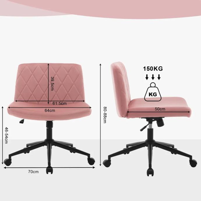 uredska stolica bez naslona za ruke, uredska stolica sa širokim sjedalom, okretna stolica, podesiva visina, ergonomska krojačka stolica, stolica za čitanje, nosivost 150 kg, baršun, roza