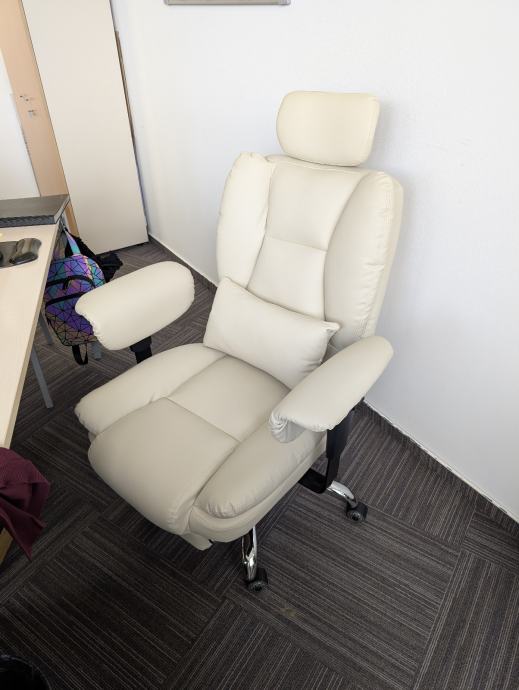 Ergonomska uredska fotelja, nosivost do 200 kg, u bež boji.