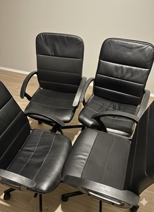 Prodajem 4 crne uredske stolice. Stolice su udobne, s visokim naslonom i podesive po visini. Idealne za kućni ured ili gaming