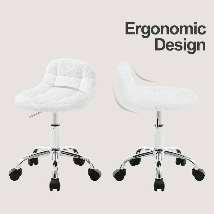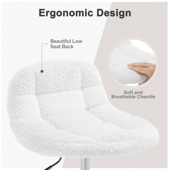 Ovaj kompaktni uredski stolac s niskim naslonom prekriven je mekanim, ugodnim chenilleom i ispuna visokog gustoćom pjene pruža optimalnu udobnost i elegantan izgled. Stolac je ergonomski dizajniran – podesiva visina između 43,5 i 55 cm te naslon za leđa omogućuju dobru potporu donjem dijelu leđa.