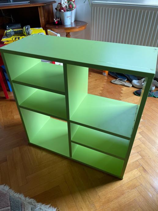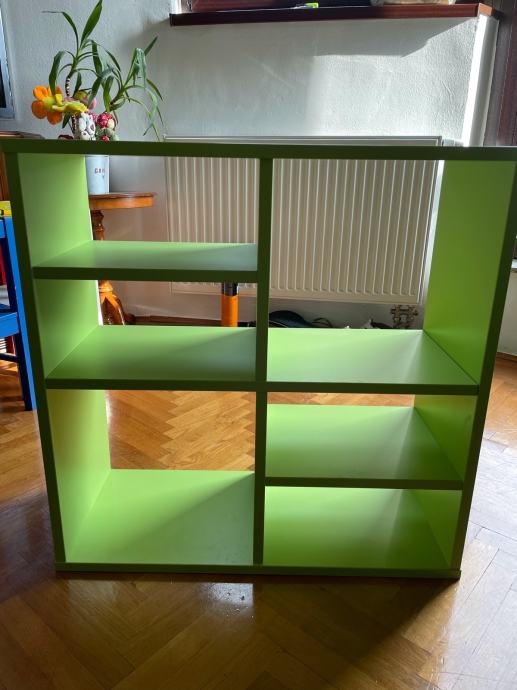 Ormarić s pregradama u zelenoj boji. Za odlaganje knjiga, igračaka, ukrasa…