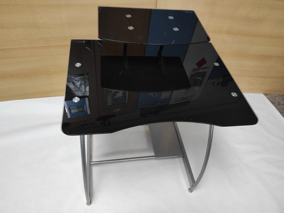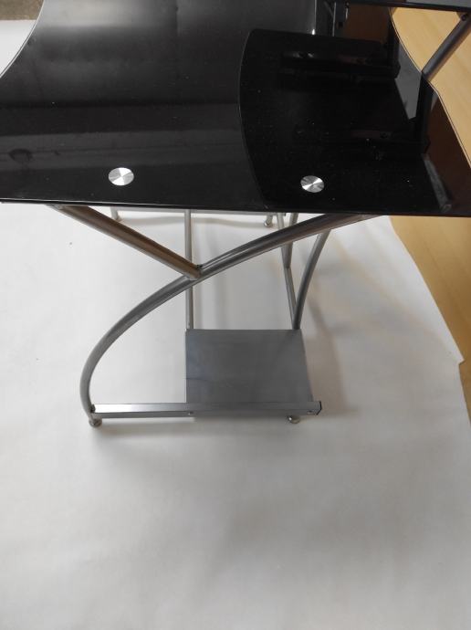 Prodajem stakleni stolić .Kaljeno debelo tamno staklo sa Al metalnom metalik konstrukcijom za računalo,ili za geming,prodam za 950 kn.,ili prema dogovoru.Stolič se da rastaviti u dijelove,radi lakšeg transporta.Stoji nekoristen.Moguča dostava postom.Umanjenje sada na 99 e.