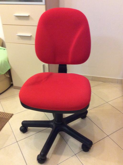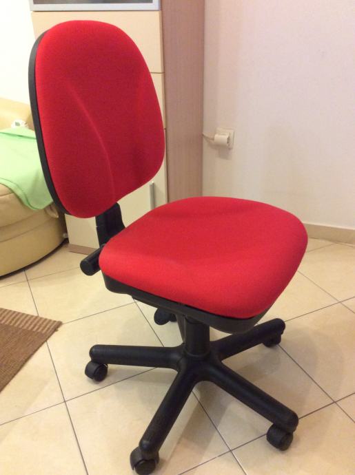 prodajem očuvanu, malo korištenu uredsku stolicu, reguliranje visine i nagiba naslona, crvena, s kotačićima
