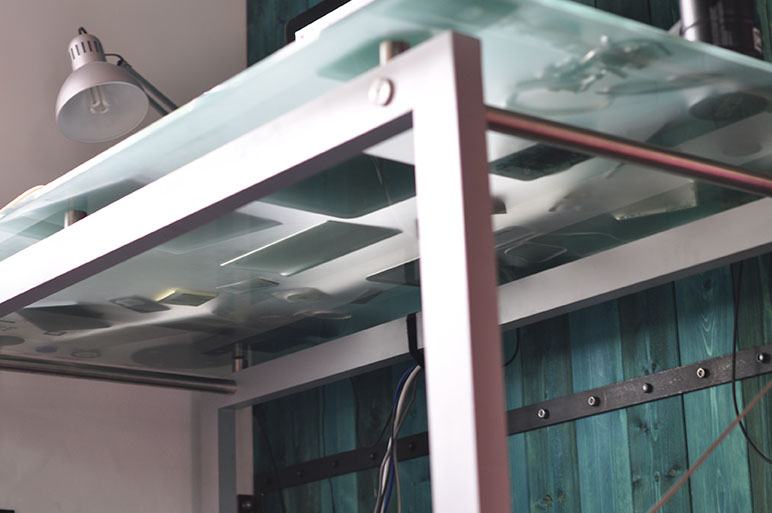 Konstrukcija metalna a gornja ploha kaljeno mat staklo!